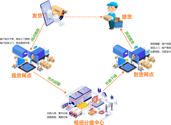 解决方案:会员管理系统+银企直连+在线清分系统+扫码支付结算系统+枢纽分拣系统+派送管理系统+报表管理系统+公安系统对接